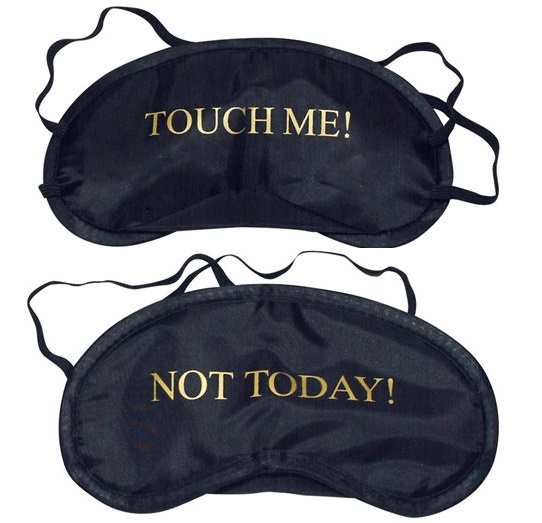 Dwie, klasyczne maski na oczy z napisami TOUCH ME! oraz NOT TODAY!