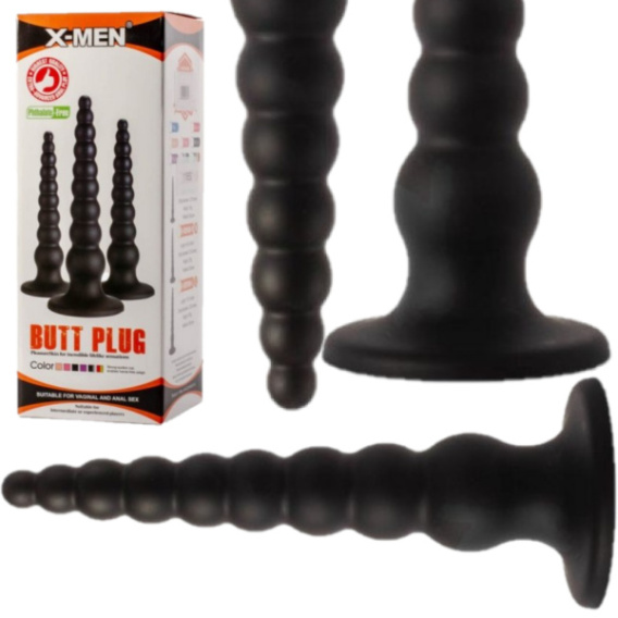 Duży korek analny w kształcie stożka o jedwabiście gładkiej powierzchni ze stymulującymi koralikami.