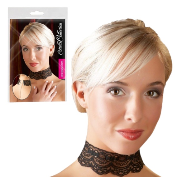 SEKSOWNY NASZYJNIK CHOKER KORONKOWY HAFT CZARNY